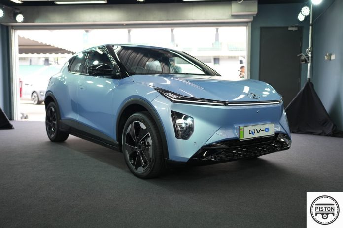 The vehicle sits on an all-new platform co-developed with Magna Steyr, designed to accommodate future A- and B-segment models with the possibility of hybrid or range-extended EV variants. Under the floor sits the 405.7 kg CATL LFP battery pack, rated IP68 and IP69 for water and dust resistance, and liquid-cooled for stability in Malaysia’s hot climate. A 201hp front motor produces 285Nm of torque, allowing the QV-E to reach 100km/h in 7.5 seconds in Sport mode and achieve a top speed of 165km/h.