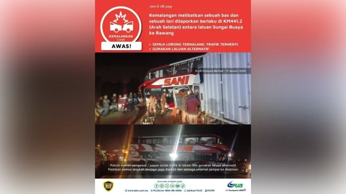 PETALING JAYA: An early morning collision between an express bus and a lorry on the North-South Expressway, bear Rawang, has left five individuals trapped, prompting an emergency rescue operation.