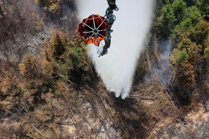 The helicopters can carry up to 1,340 litres of water per flight for targeted releases.
