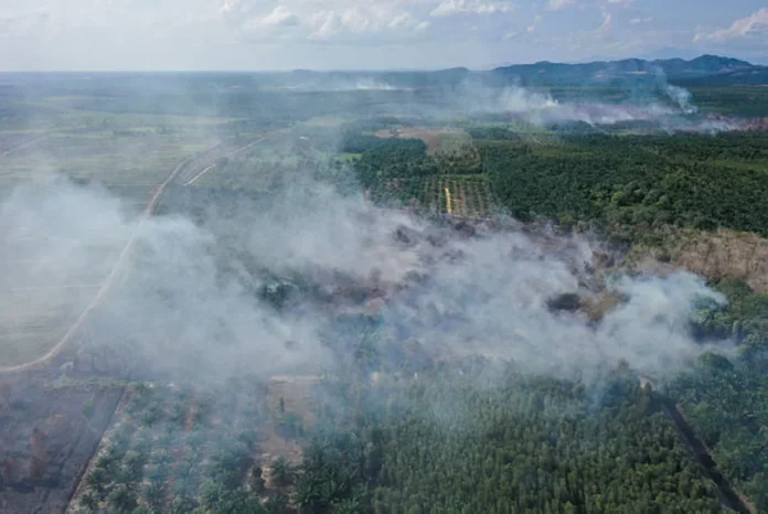 KLUANG: A plantation fire has engulfed four hectares of oil palm and five hectares of pineapple crops at Peninsular Plantation Sdn Bhd in Simpang Renggam.