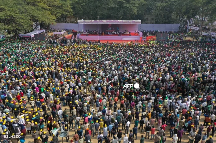 Tens of thousands of flag-waving supporters of key frontrunner Tarique Rahman crowded the streets of Sylhet. The Bangladesh Nationalist Party (BNP) loyalists chanted his name and carried placards of the prime ministerial hopeful.