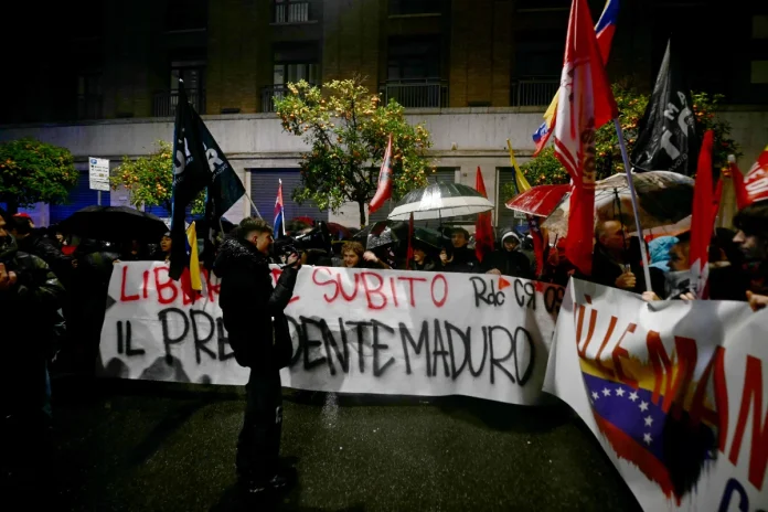 Hundreds protest at US embassy in Rome, denouncing the capture of Nicolas Maduro as a US-led coup and act of imperialism